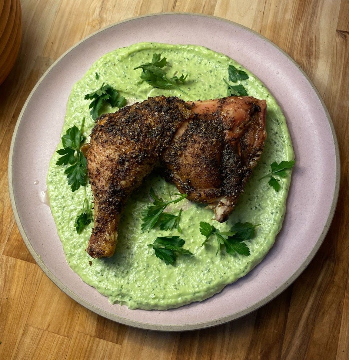 This green toum is the perfect condiment to slather on roast chicken, stuff into a pita, dress a sandwich, or even just use as a dip. If you want plain toum rather than green… just omit the parsley Enjoy!!